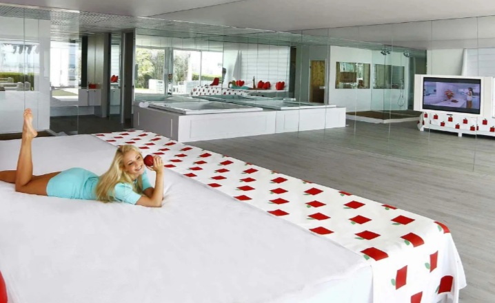 Ще бъдете настанени в стая с огледални стени и тавани, чиято повърхност е 64 м2, което е доста повече от международните стандарти.