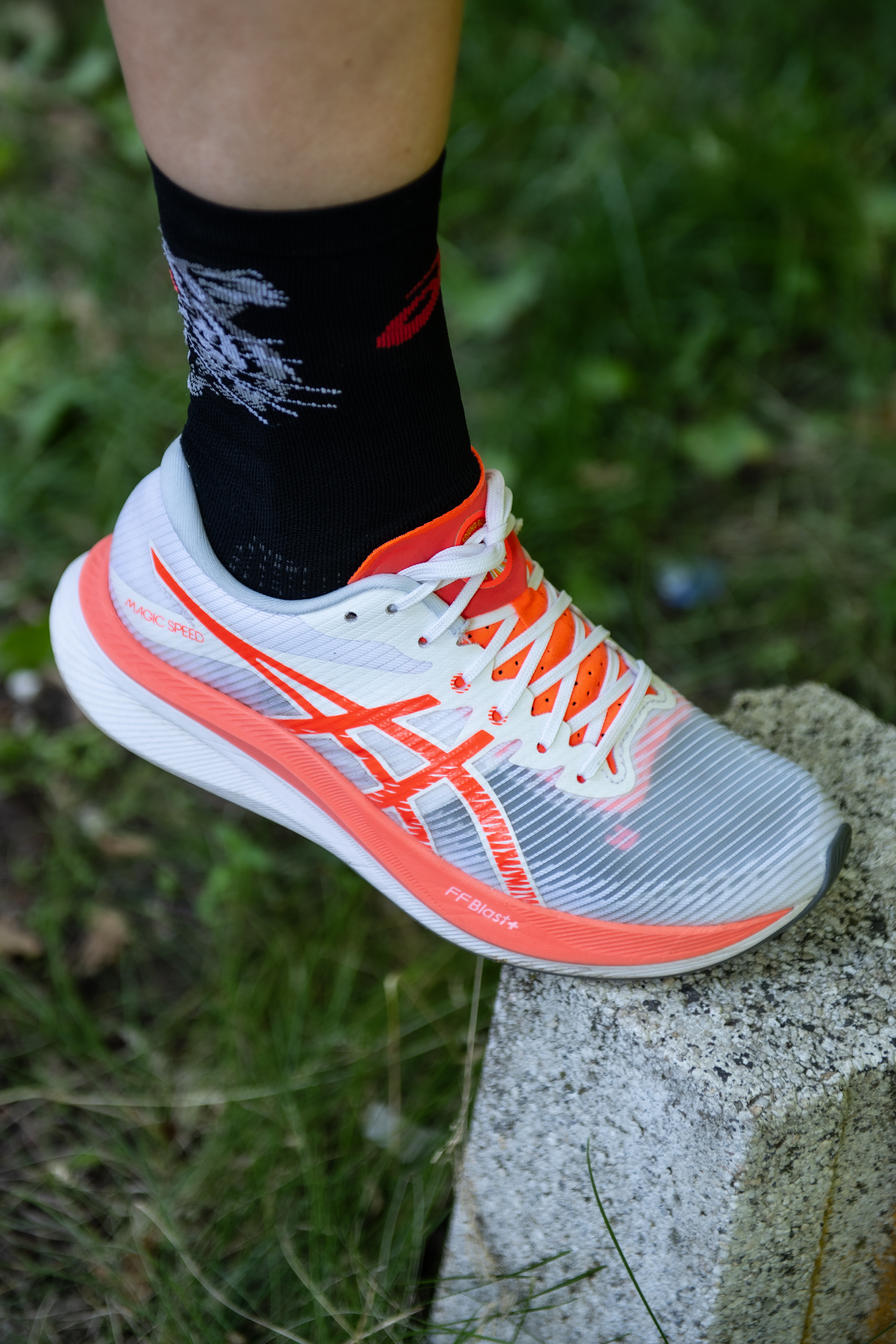 Нещо като “стрес равно на напредък ”. По време на диалога ни, и преди днешната подготовка, обаче носи ASICS Magic Speed 3: