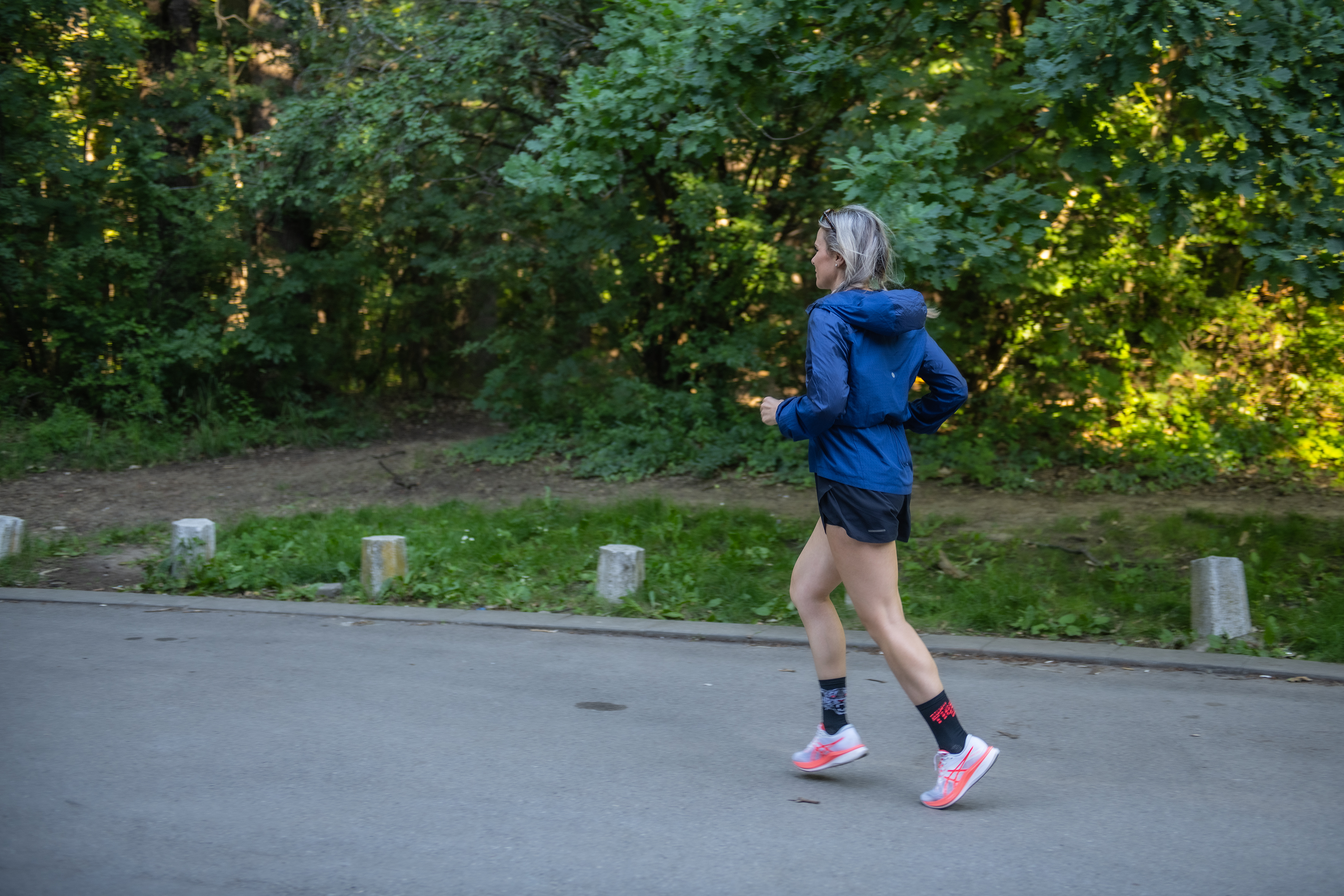 “Тези обувки са по-бързи. Имат карбонова пластина и са доста леки. Тях ги обувам, в случай че ще върша по-бързо или интервално тичане. Няма смисъл да “хабя ” такава маратонка за постепенно тичане. Тогава тя няма да ми даде нищо. ”