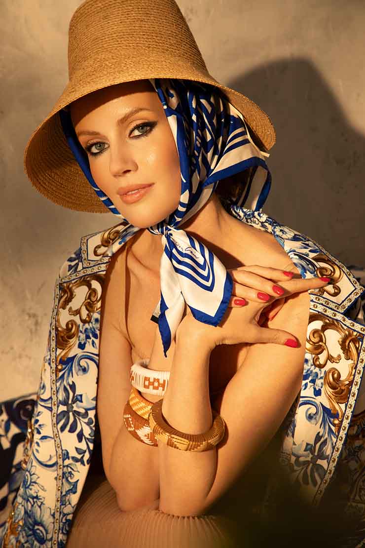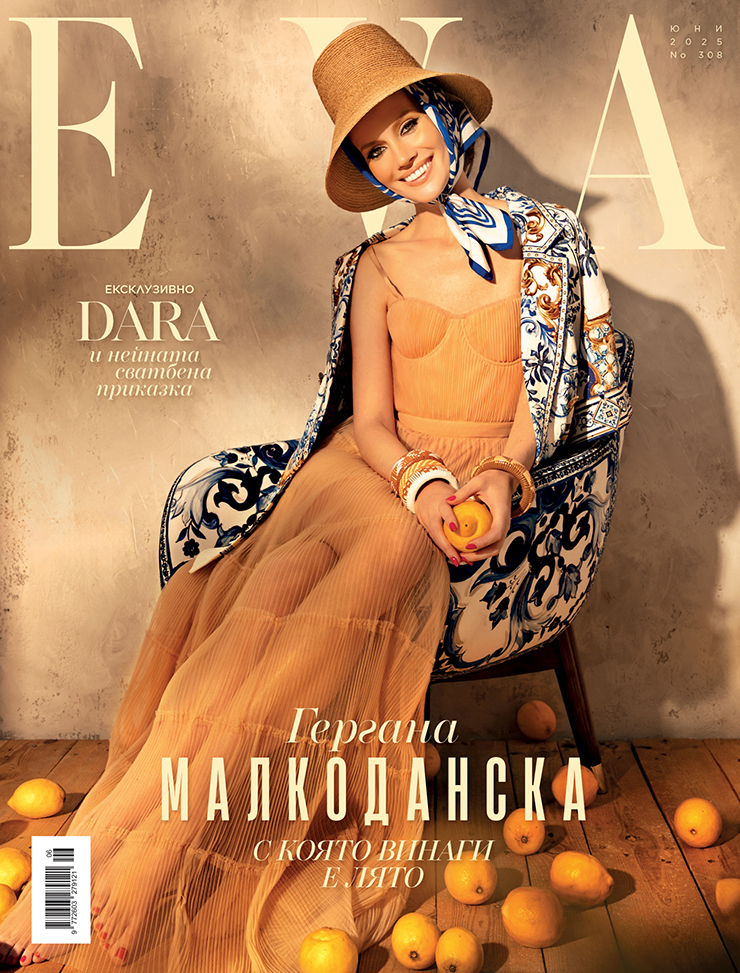 Прекрасен е. Много страст, истории, кино има в него. Единодушно го избрахме да е корица. Наистина ли? Не съм ли прекомерно друга? Не се виждат и къдриците ми… Да, ненапълно си друга, само че това изважда нови нюанси от теб и концентрира характерното ти лъчение, този хубав микс от непорочност, зарево и страст. Когато избирахме стола, на който да седиш по време на фотосите, се колебаехме сред два стола от две сбирки за дома на Dolce&Gabbana – Caretto и Mediterraneo. В последна сметка фотографът се спря на стол от втората. Ти коя би избрала? Много са ми обичани тези две сбирки. Carreto е доста сицилианска – с интензивните цветове, с изображенията на слънца и лимони. Но в случай че би трябвало да избера от двете, синята Mediterraneo чувствам по-моя. Особено пък в случай че става дума за канапе или кресло. Как избираш красивите предмети – бързо, интуитивно? Да, интуицията ме води. По отношение на предметите за интериора към този момент съм я развила много. После чак се появяват въпросите и за практичността. Но това са предмети, които не са непременно. И когато вземаш решение за сходен предмет, доста е значимо чисто прочувствено да си задоволен. Да изпитваш наслада от притежанието му. То е като да видиш нещо на витрината на фешън бутик и доста да го пожелаваш. Рационалните въпроси от рода на това „ дали имам с какво да го нося “ остават на назад във времето. Разбира се, едно е да избираш сервиз за кафе, друго е да избираш канапе. Във втория случай се намесва много повече рационалност, мисли за функционалността и въобще по какъв начин то ще стои в един повсеместен подтекст.