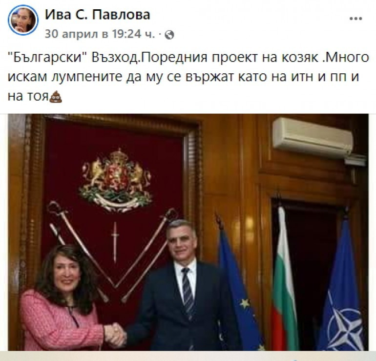 Тя се показва като Ива С. Павлова, за себе си е написала единствено, че от март работи в Министерство на туризма. Facebook интензивността и е лимитирана в проруски и антиукраински изявления и… хейт против държавното управление.
