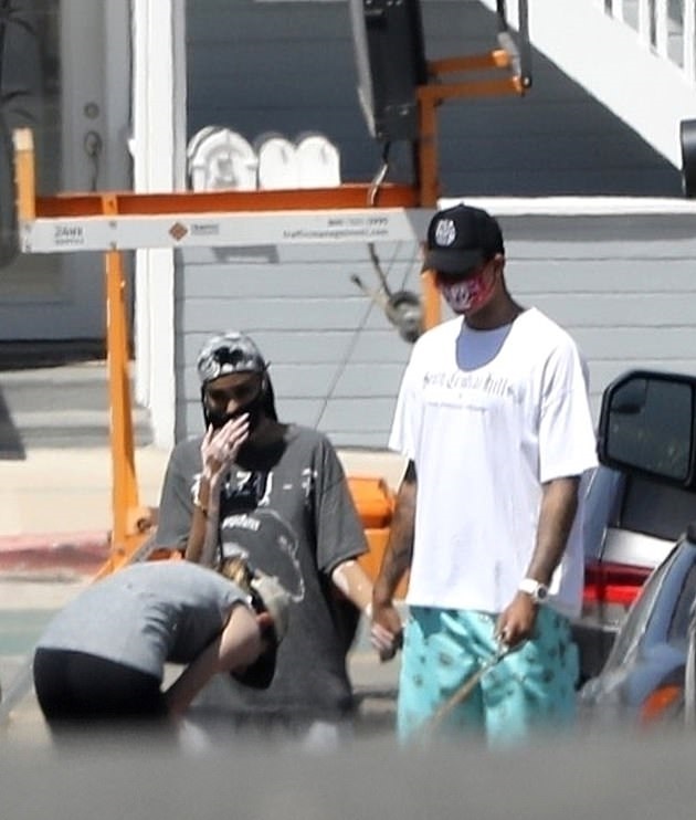 Ангелът на „ Victoria`s Secret” се появи с необятна тениска и спортно долнище, които прикриваха изумителното й тяло. Тя ги съчета с комфортни маратонки и добави забрадка на главата си, а гаджето й беше заложило на бяла тениска и светлосини къси панталони, които излеждаха съвършено в комбиниране с кецовете му.