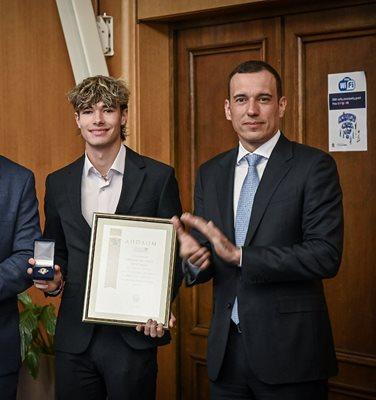 Пилотът бе награден от столичния кмет Васил Терзиев Снимка: Юлиан САВЧЕВ