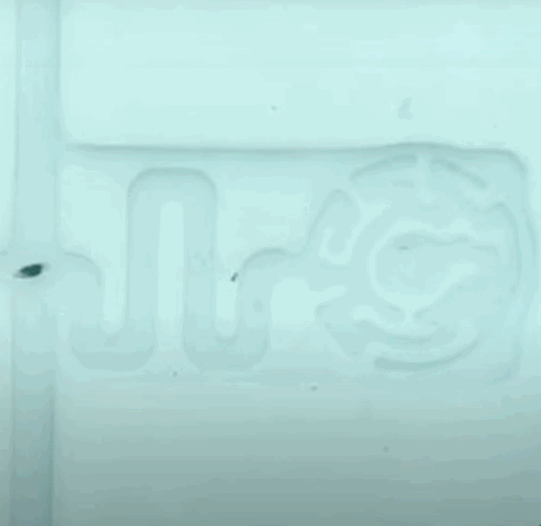 За да показват евентуалното приложение на робота (например в артериите и капилярите на човешкото тяло), учените основават лабиринт с огромни и тесни секции.