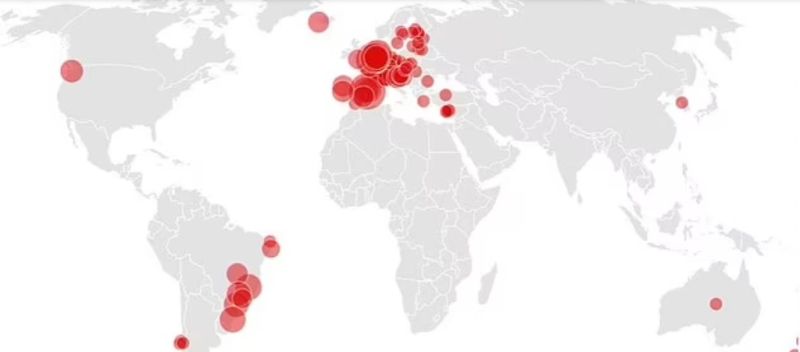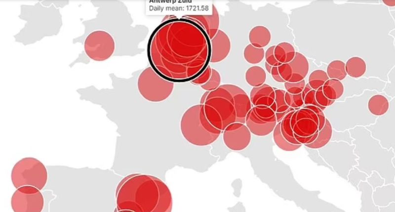 Получената карта демонстрира, че Европа има едни от най-замърсените с кокаин водни пътища в света. Начело на този лист е белгийският град Антверпен. Данните за тази карта са събрани от Агенцията по наркотиците на Европейския съюз (EUDA), която проучва проби от отпадъчни води от 108 града.