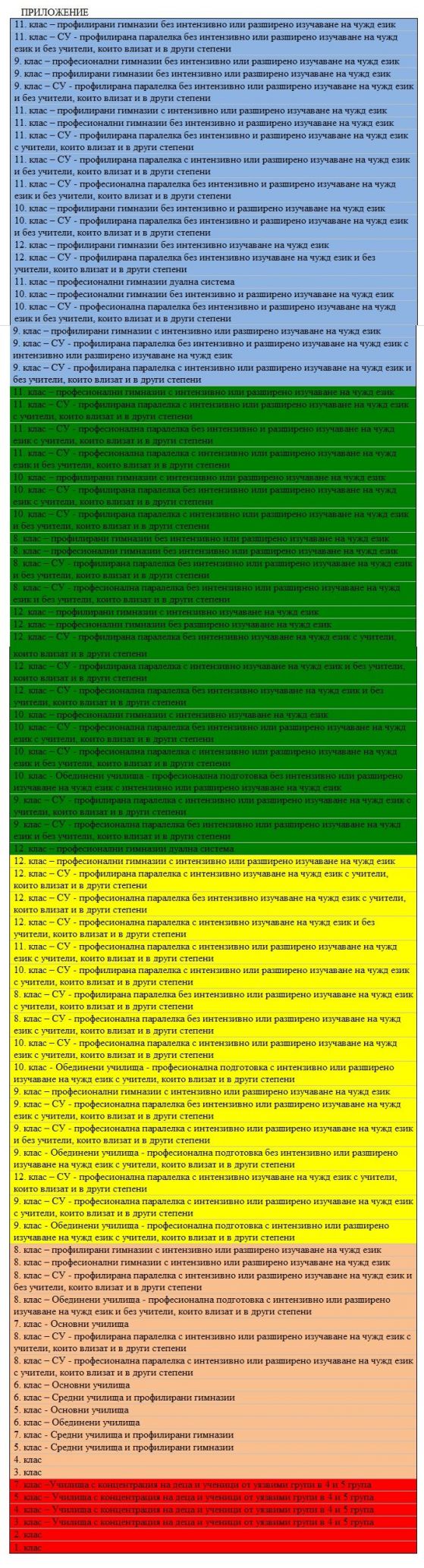 3. приоритизират класовете според логаритъма по-долу (най-горе са класовете, които първо могат да минат на отдалечено образование, най-долу - тези, за които това е най-нежелателно).