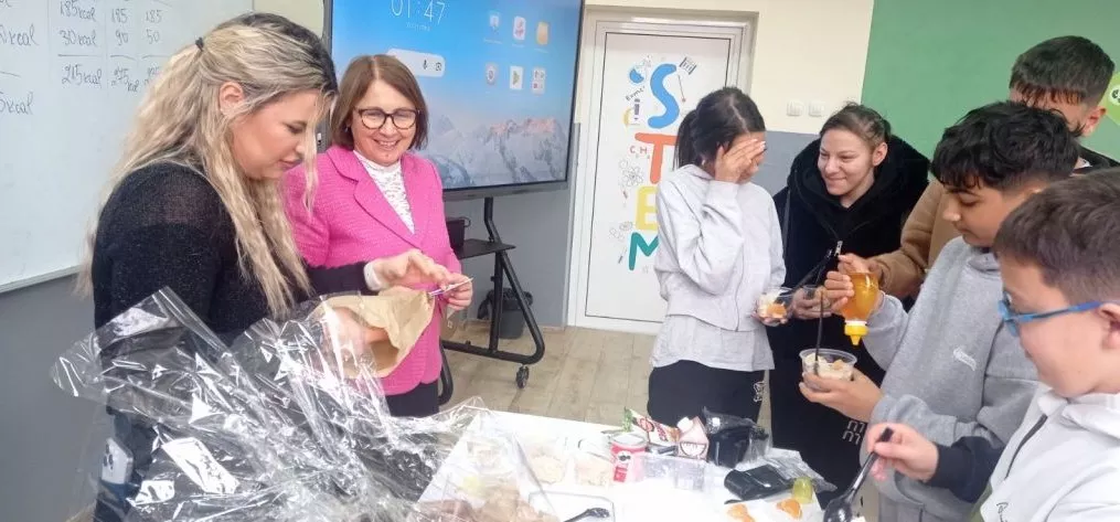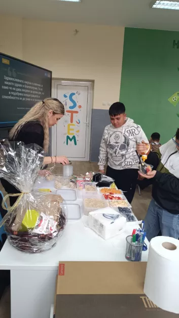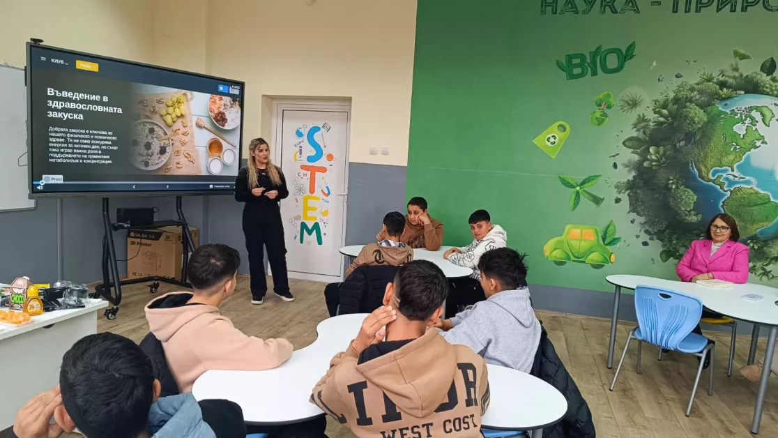 По време на урока учениците участваха в поредност от интерактивни игри, в които трябваше да избират хранителни артикули, да пресмятат тяхната хранителна стойност и да избират сами своя здравословен проект за закуска с повече протеини, фибри и по-малко въглехидрати. Заниманието беше наситено с бурни полемики, в които децата признаха, че избират вкусните храни пред здравословните. В рамките на урока обаче се убедиха, че и потребните храни могат да бъдат вкусни. Заедно със своята преподавателка те подготвиха овесени ядки с разнообразни типове млека – прясно, бадемово, кокосово – мед и плодове, и се убедиха, че е вкусно. Предложиха също разнообразни менюта за сутринта – омлет със сирене и добавка от свежи зеленчуци, тост със сирена и пълнозърнест самун, овесена солена каша, мюсли с плодове и кисело мляко, тортила с немазни меса и зеленчуци.
