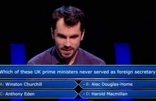 Джон Робинсън си потегли с 500 000 паунда, откакто се препъна на последния въпрос за огромната премия. Преподавателят се затрудни да отговори кой всред някогашните английски министър председатели Уинстън Чърчил, Алекс-Дъглс Хоум, Антъни Идън и Харолд Макмилан в никакъв случай не е бил министър на външните работи на страната.