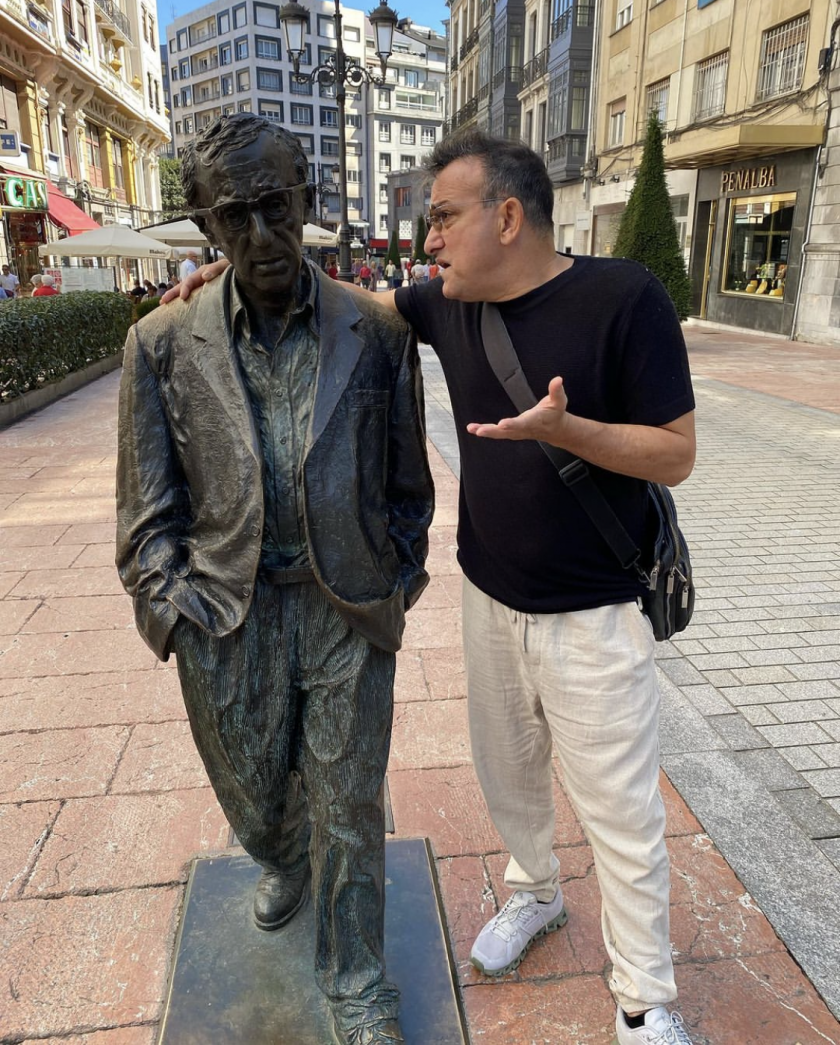 " Уди, слушай, това е доста елементарно! Просто би трябвало да направиш първата крачка! " Този извънреден съвет даде Васил Василев-Зуека на световноизвестния режисьор и сценарист Уди Алън. Двамата " се засякоха " в един от най-красивите испански градове Овиедо. Всъщност срещата на Зуека бе с бронзовата скулптура на Уди Алън, която е сложена в града. Снимки в обществените мрежи пусна самият Васил Василев.