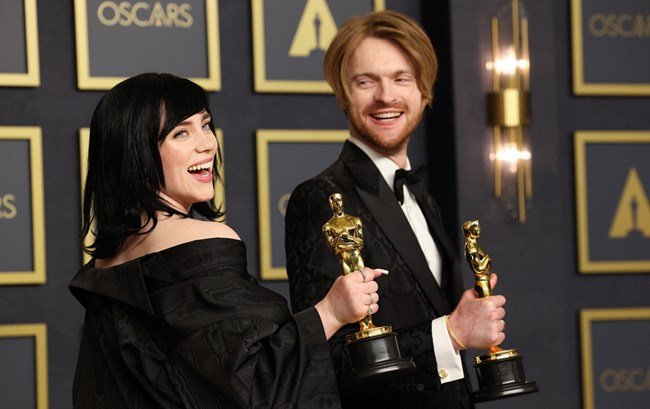 Двамата изглеждаха очевидно шокирани, когато чуха имената си. Айлиш благодари на " фамилията на 007 ", измежду които Барбара Броколи, Даниъл Крейг, Дони Мар. Брат й благодари на родителите им.