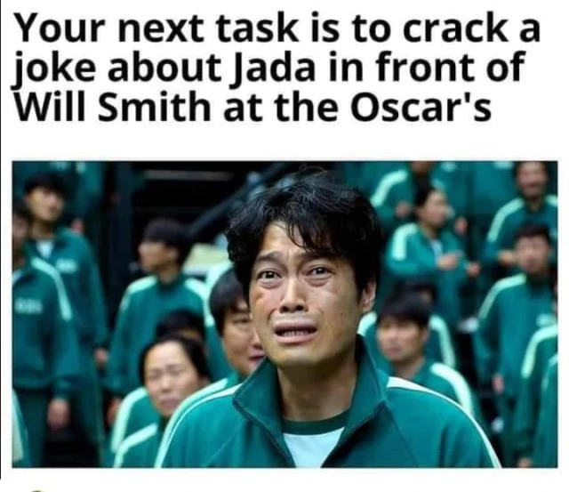 Следващата ти задача е да се пошегуваш с Джейда на "Оскар "-ите, в наличието на Уил Смит.
