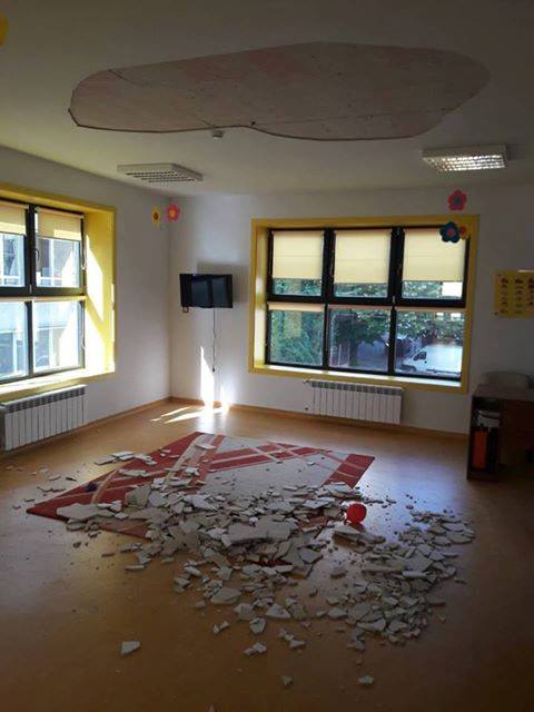Паднало е голямо количество от мазилката на тавана. Пострадало е най-малко едно дете, което има открити рани по лицето и главата. Като по знамение не е станало най-страшното, сигнализират родителите. Те са безапелационни, че не би трябвало да се прави следващият ремонт, а първо да мине ревизия, която да ревизира дали случаят няма някой ден да се повтори. Децата от през днешния ден са преместени в прилежаща постройка, до момента в който трае ремонтът на тавана.