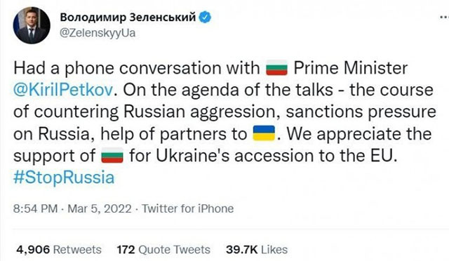 Важен акцент в диалозите сред Зеленски и Петков е било страната ни да поддържа Украйна за банкет в Европейски Съюз.