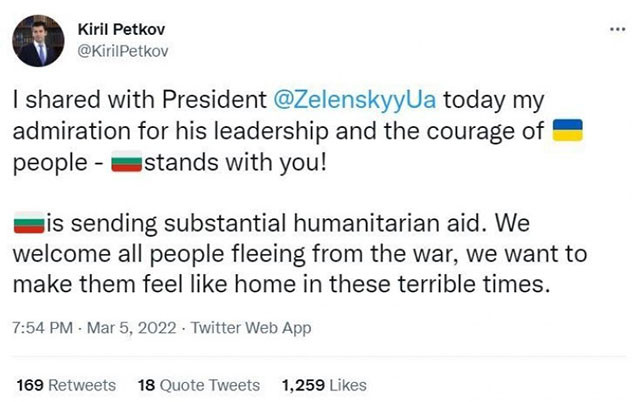Интересен подробност е, че в пост на Кирил Петков в Туитър след срещата, както и в прессъобщението пуснато до медиите от прессекретариата на Министерски съвет липсват всички тези детайлности сред двамата. Петков не загатва и дума за глобите против Русия, както и че е дал обещания България да помогне на Украйна за участие в Европейски Съюз.