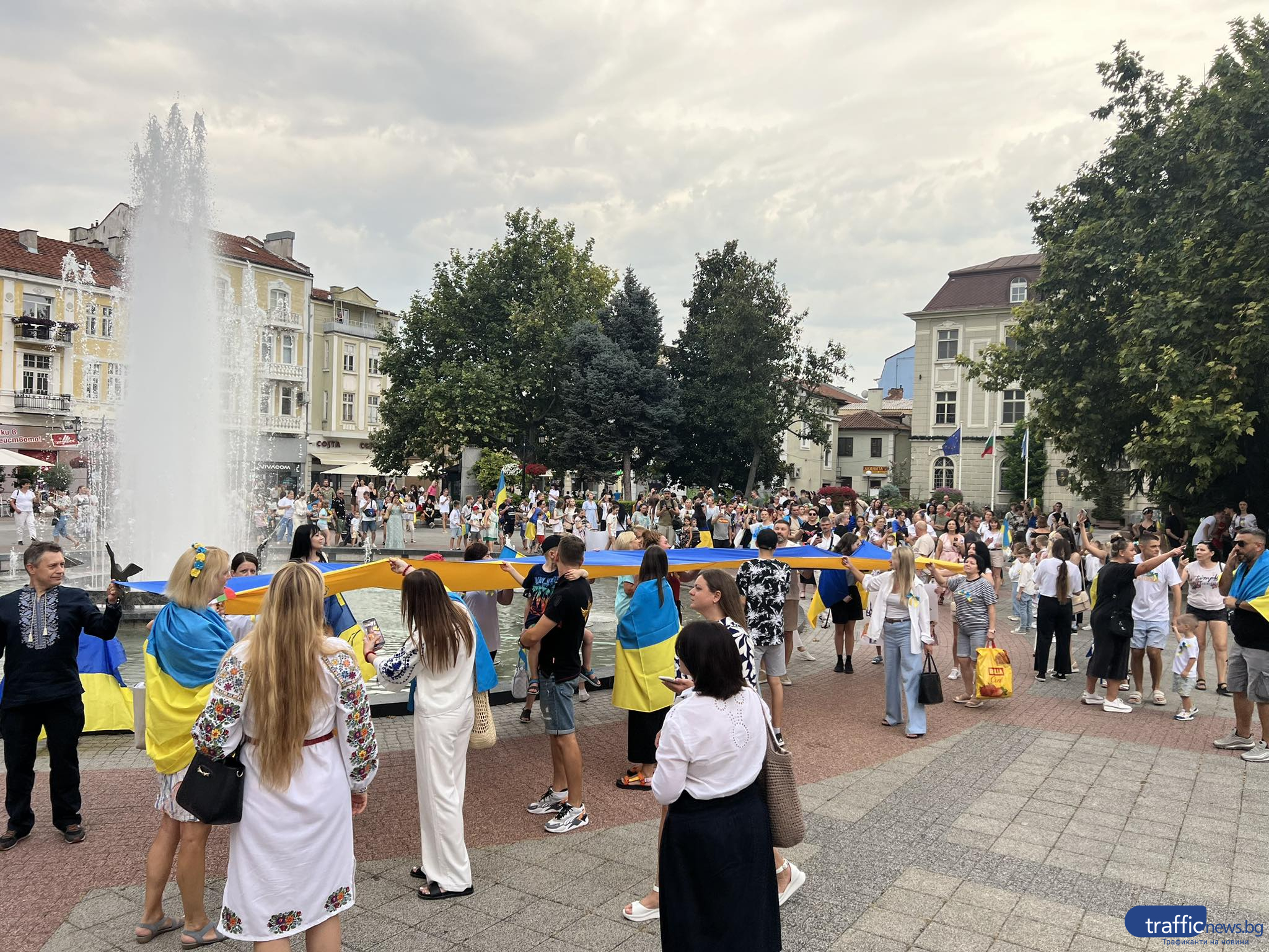 Хора от Украйна и българи, които взеха решение да ги поддържат, се включиха в спокойно шествие „ Спрете войната в Украйна “ по Главната. В момента празникът продължава на Централния площад до фонтана с акцията " Верига на съединяване за Деня на независимостта на Украйна " и къс концерт. Празникът ще приключи с българско хоро.
