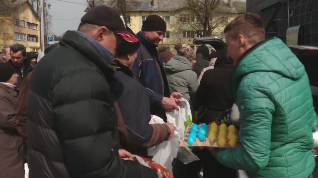 В градовете Буча, Ирпен, Бородянка и Гостомел няма магазини за храна. Там са останали най-вече възрастни хора. Доброволци от Киев купуват и раздават храна за хората в Буча. Днес са им донесли боядисани яйца и козунаци за Великден.