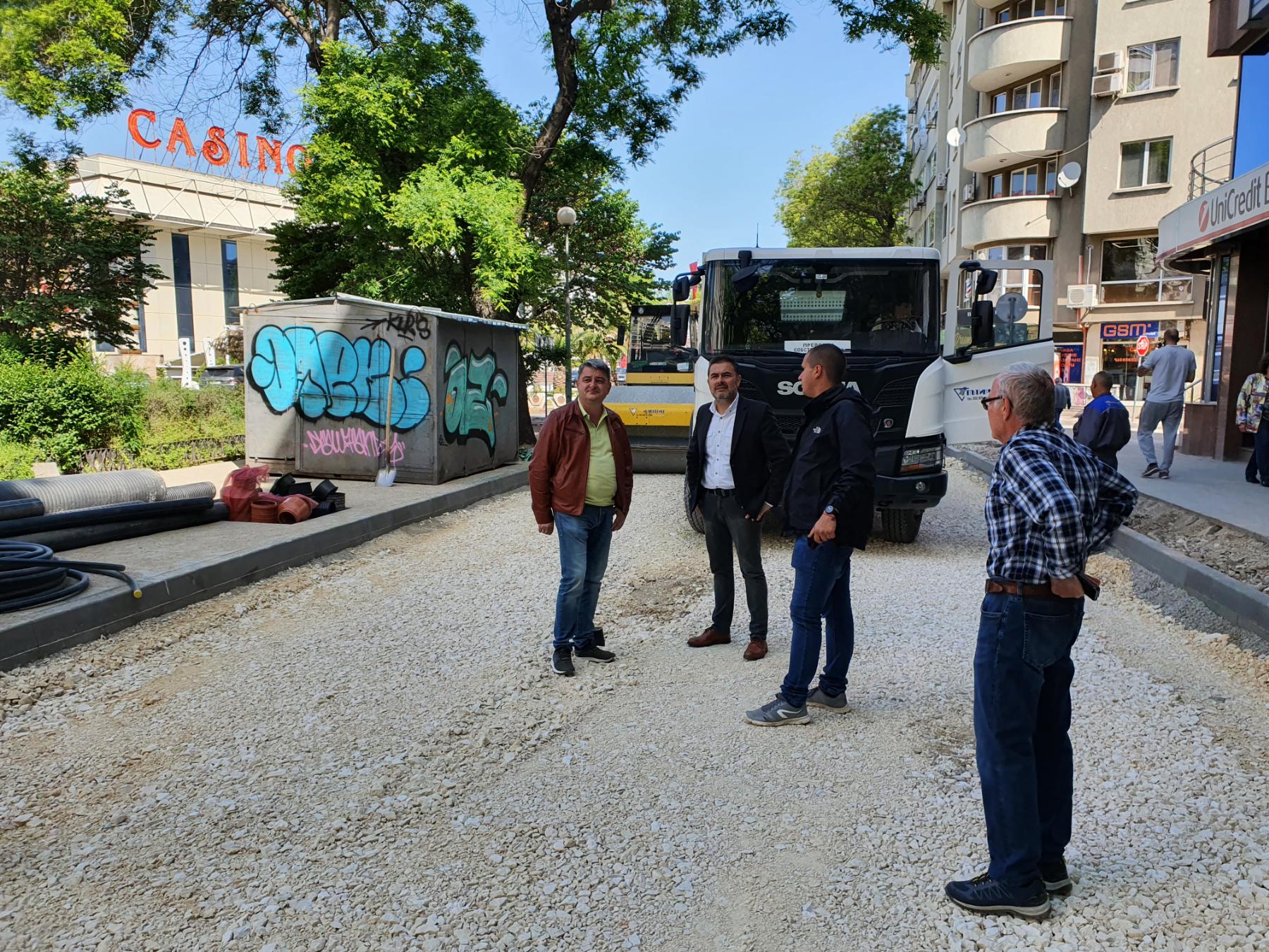 „ Основата на платното към този момент е поставена и в този момент се трамбова. След нея ще бъдат положени и нужните пластове асфалт и улицата ще бъде отворена за придвижване за празненствата на завършващите. Строителите поеха ангажимент по улицата да може да се минава за абитуриентските балове след десетина дни. Улица „ Васил Левски “ води към един от огромните хотели в града, наоколо е и различен емблематичен хотел, където по традиция се организират балове. Затова и кметът Здравко Димитров пое ангажимент да бъде пуснато придвижването до 20 май и желаех да се уверя на място, че това ще бъде спазено “, разяснява при инспекцията Пламен Райчев.
