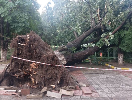 В обществените мрежи се появиха и сигнали за паднали дървета, като едно от тях се намира в двора на СУ " Д-р Петър Берон ".