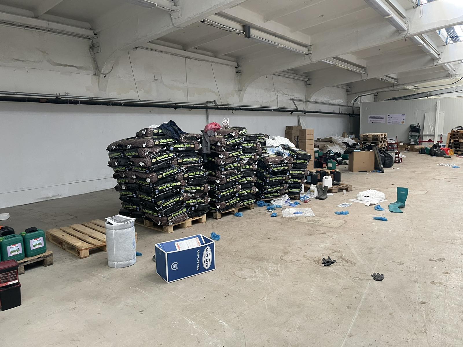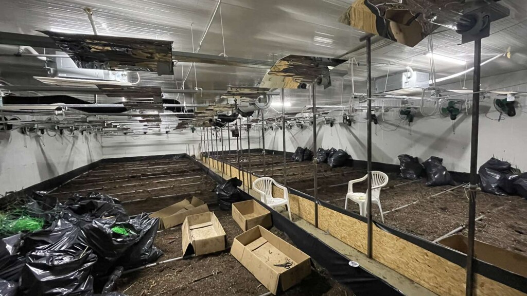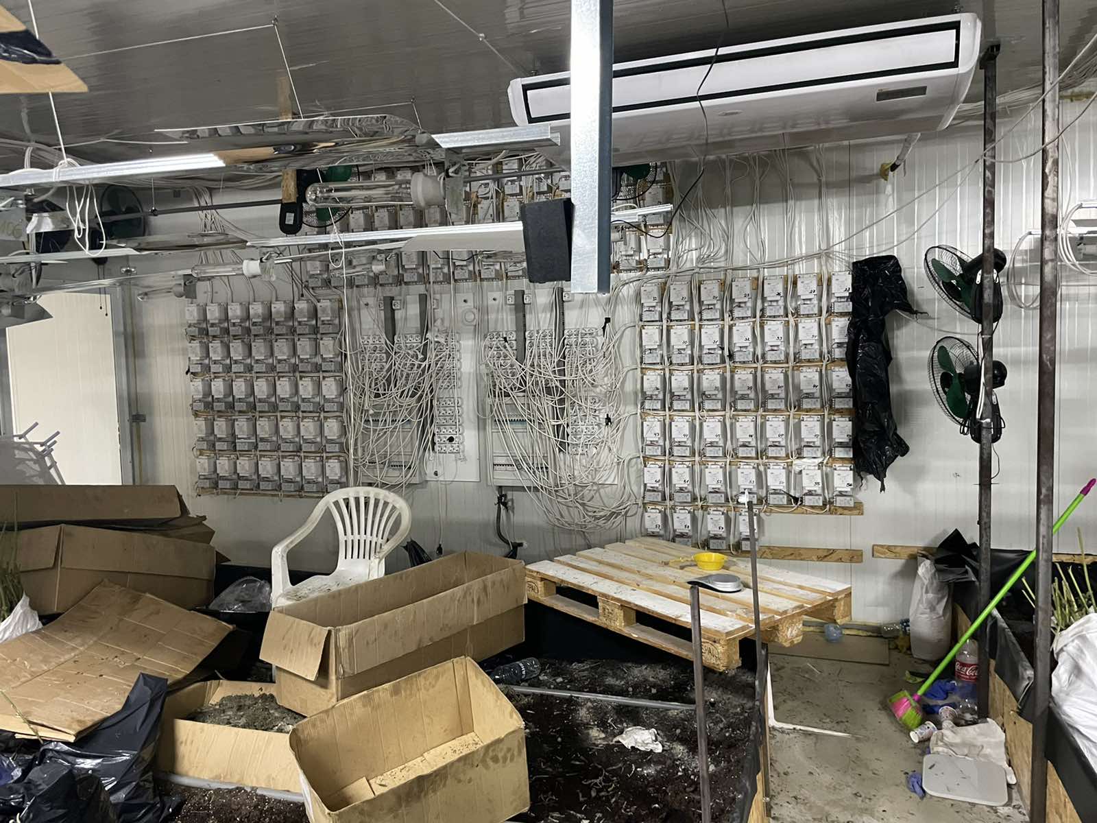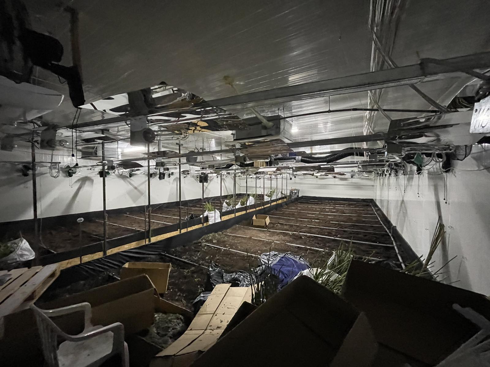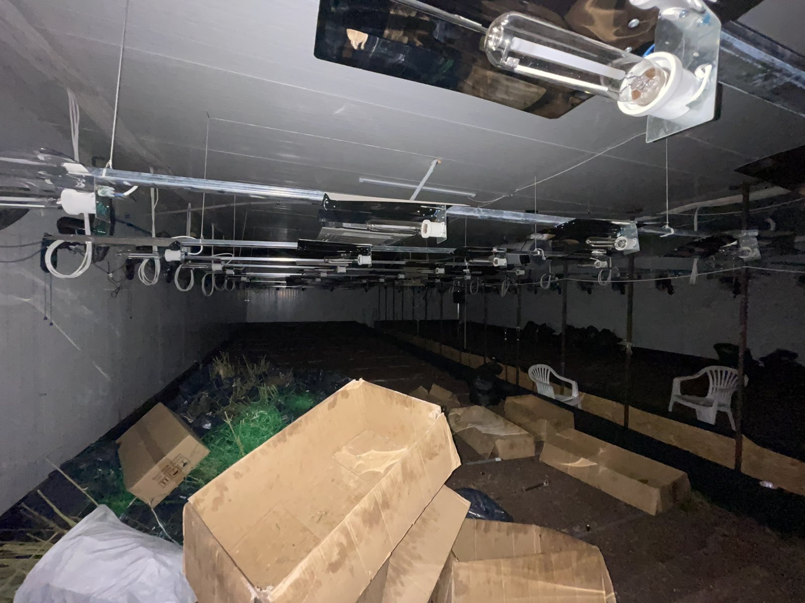 Иззети са торове, чували със земна маса, кварцови лампи, стръкове растения от рода на конопа, както и суха зелена тревиста маса, реагираща при тест на марихуана.
