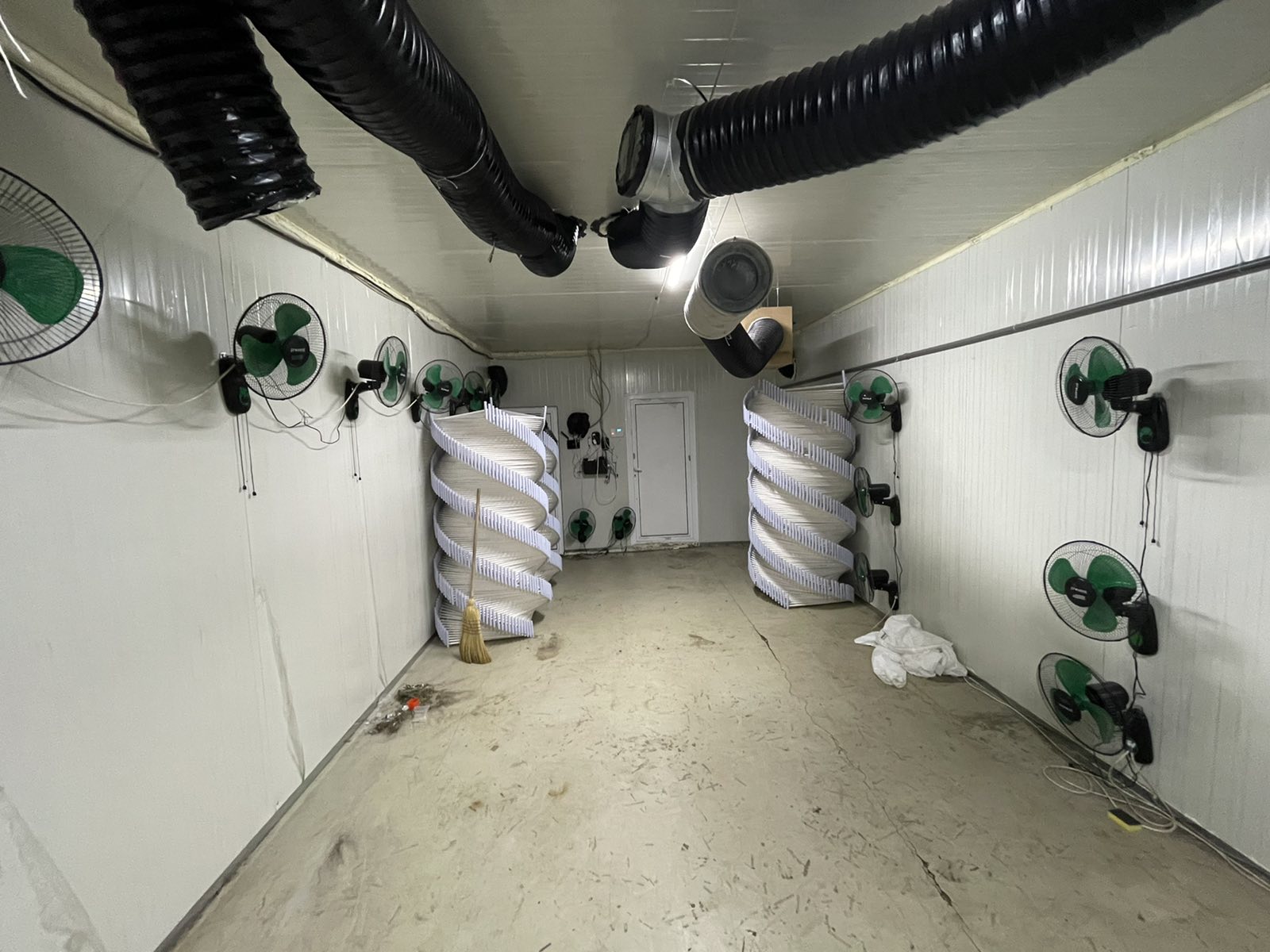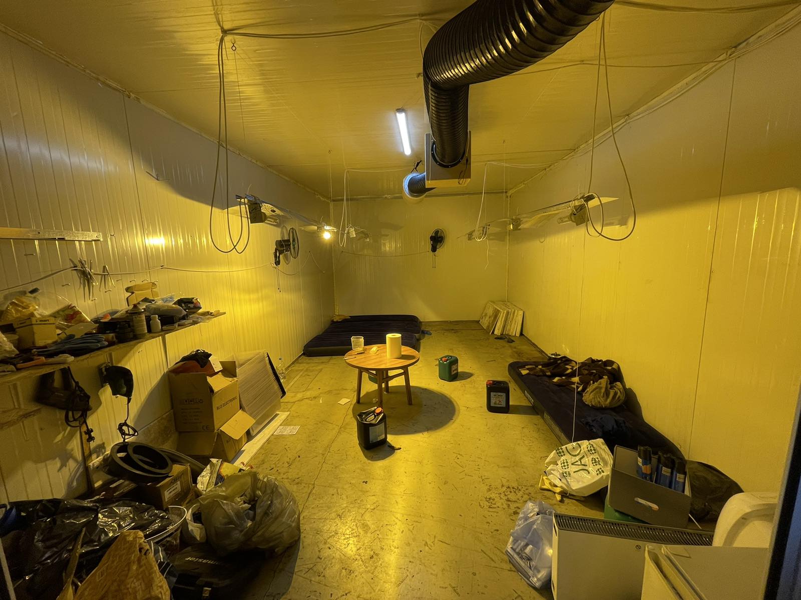 В постройката е открито високотехнологично помещение с построена климатична и отоплителна система и система за въздушно-капково напояване от най-голям клас, пригодено за развъждане на растения от рода на конопа.