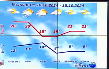 У нас в четвъртък и петък ни чака хубаво време. В петък вечерта и в събота през страната ще премине бързо атмосферно разстройване. чака ни намаляване на температурите. По-значителни превалявания ще има в петък вечерта в Западна България, а в събота в източните региони. Ако сте решили да употребявате уикенда за нещо навън, използвайте неделния ден, тъй като в събота изключително в източната част на страната ще е предимнон облачно, ще има превалявания, разяснява тя.