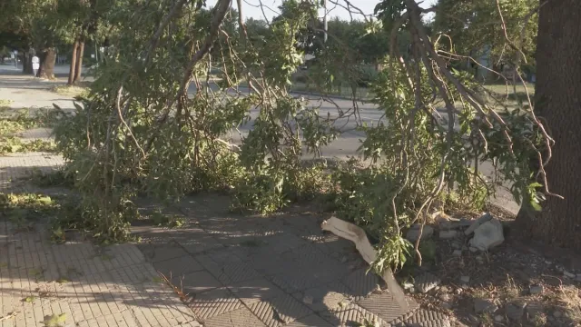 Ураганният вятър в Сливен прекърши дървета