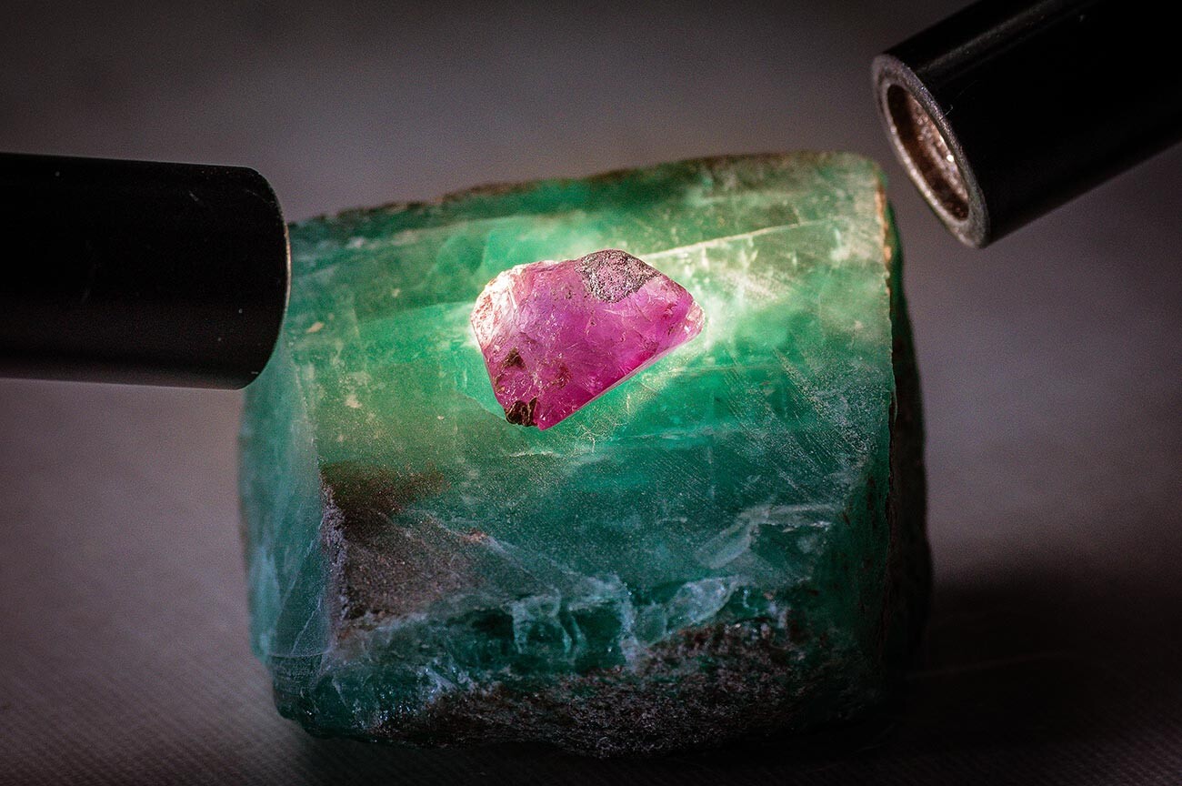 Павлов/Sputnik В реалност всички тези камъни са с задграничен генезис и до XVIII век шпинелът въобще не е можел да се разграничи от рубина, на пръв взор те си наподобяват извънредно доста. По времето на Съюз на съветските социалистически републики залежи на шпинел са открити в Якутия, Урал и край Байкалското езеро. Между другото, те постоянно се срещат дружно със скъпоценни рубини и сапфири (в Русия няма индустриален рандеман на тези камъни).