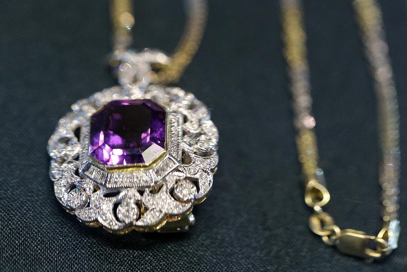 Иля Наймушин/Sputnik Тъмнолилавите аметисти се назовават Deep Siberian (или Deep Russian) и са извънредно редки естествени полускъпоценни камъни, заради което са доста скъпи в ювелирното изкуство. Те се срещат в Урал, Сибир и Карелия.
