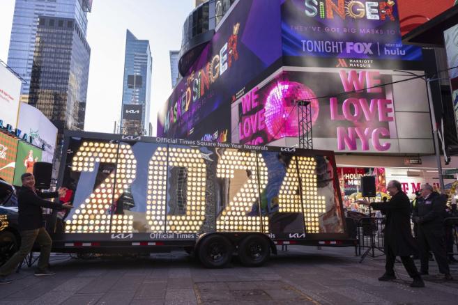 Усещането за новогодишната нощ в Ню Йорк става все по-осезаемо, откакто и табло с надпис " 2024 " беше доставено на " Таймс скуеър " за фамозното улично празненство за посрещане на Нова година, съобщи Асошиейтед прес.