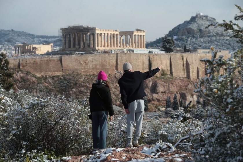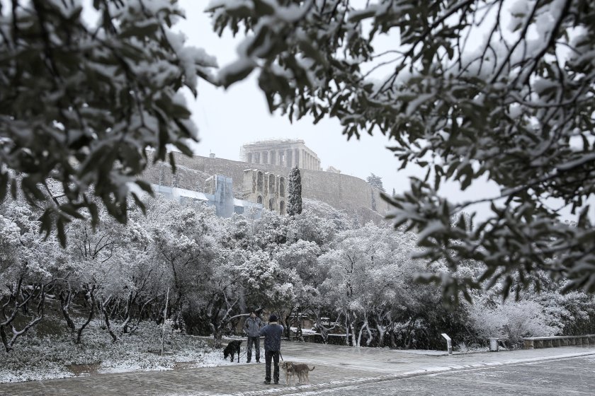 Зима в Гърция: Затвориха училищата в столицата Атина