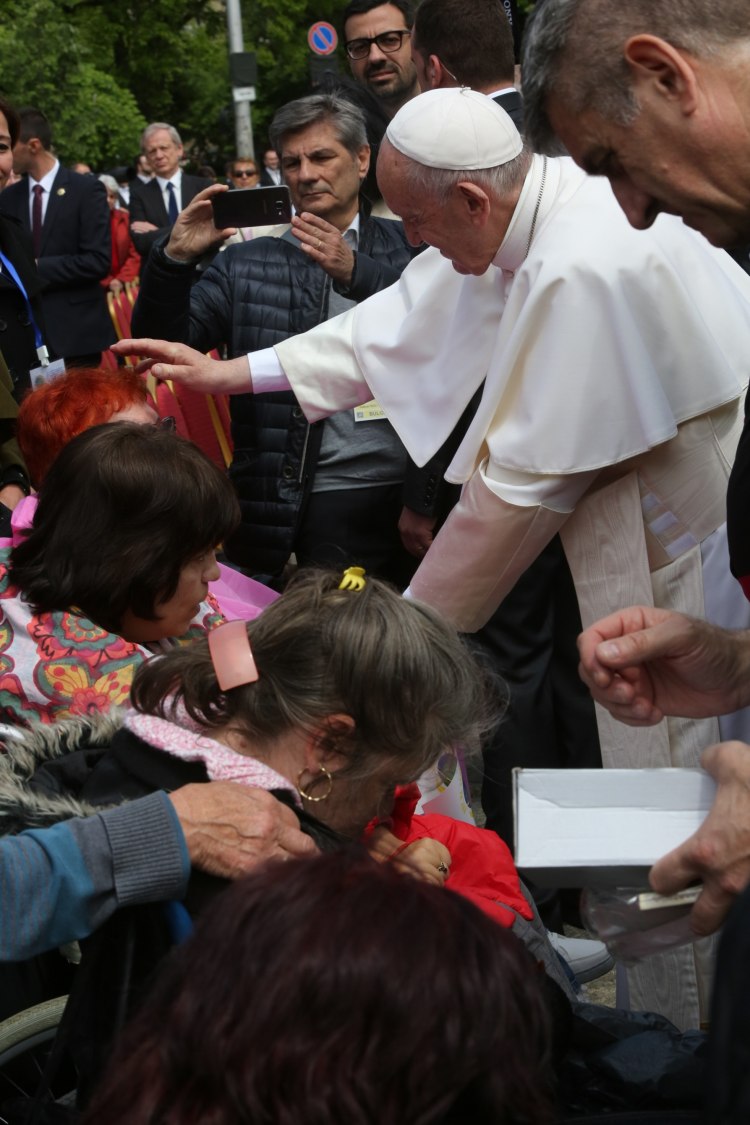 А главата на Римокатолическата черква не изневери на себе си. И макар, че съгласно някои анализатори, това е нарушило протокола, той слезе измежду хората на площада и се докосна до тях.
