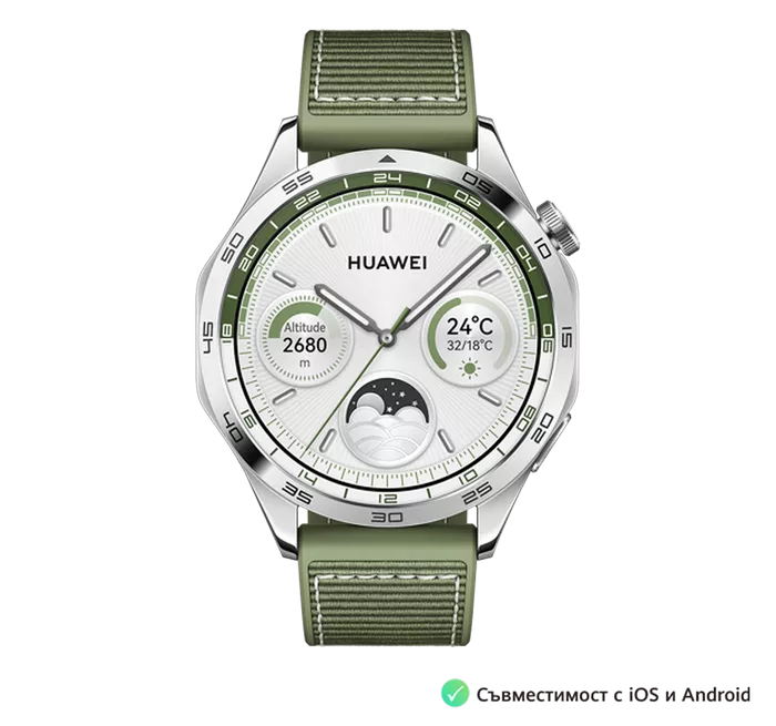 До края на април Huawei Watch GT 4 46 mm Green и Huawei Watch GT 4 46 mm Black могат да бъдат закупени за 299,99 лева в брой с проект Unlimited Ultra от А1.