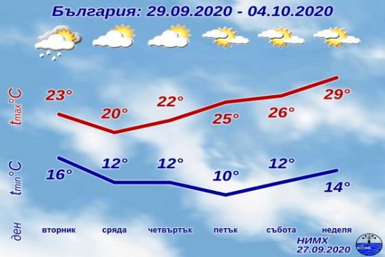 Утрото ще стартира с температури сред 9 и 14 градуса, а оптималните денем ще доближат 22° на запад и 29° на изток, предвижда Национален институт по метеорология и хидрология.