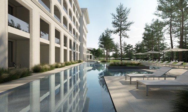 Запазвайки естествената зеленина и вековни борове, хотелът съчетава неповторима градина с морска гледка, в която доброволно са вписани зони за релакс към външните басейни, фитнес навън, детска и тийн зона.