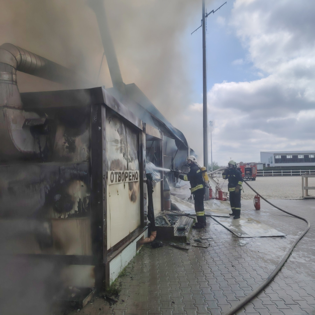 В 10:13 ч. е получен сигнал за горяща прилежаща структура към конната база в пловдивското село Царацово, в която се обитава ресторант с кухня и открити места за аудитория по време на надпревари.