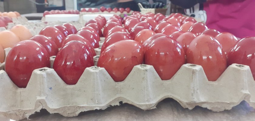В боядисването се включват и доброволци, а яйцата са единствено червени.
