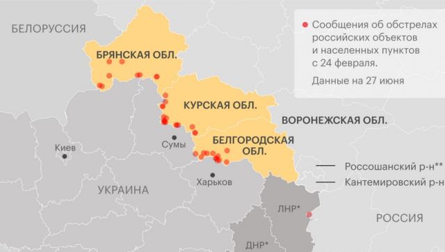 На 25 юни в региона на Белгород " жълтото " равнище на терористична заплаха беше удължено до 9 юли. Подобен режим на територията на техните райони беше уголемен от губернаторите на Курска и Брянска области Роман Старовойт и Александър Богомаз.