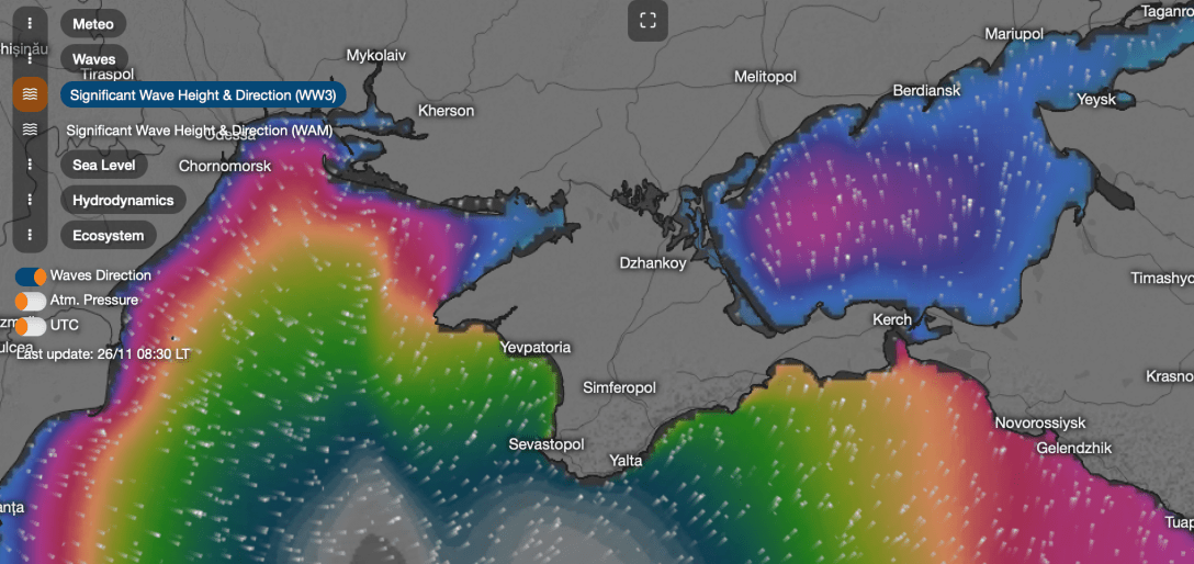 Отбелязва се, че пикът на неприятното време на окупираната територия ще бъде регистриран от 21:00 часа на 26 ноември до 0:00 часа на 27 ноември. Височината на вълните към този миг ще бъде от 8 до 10 метра, което доближава до равнището на 3-4 етажа на къщата.