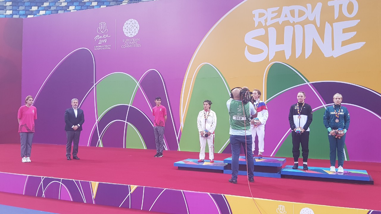 В битката при девойките Айлен Ахмедова загуби с 1:2 в първия си дуел от украинката Рилия и не продължи напред в кат. 53 кг на олимпийския юношески фестивал в Баку. Шампионката стана Полина Лукина от Русия победила на финала Елнура Мамадова от Азербайджан.