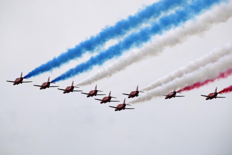 Кулминация на церемонията беше проява с военни самолети, след което Кралицата и Тръмп се срещнаха с ветерани от войната. Това беше и последната демонстрация от тридневното държавно посещаване на американския президент във Англия.