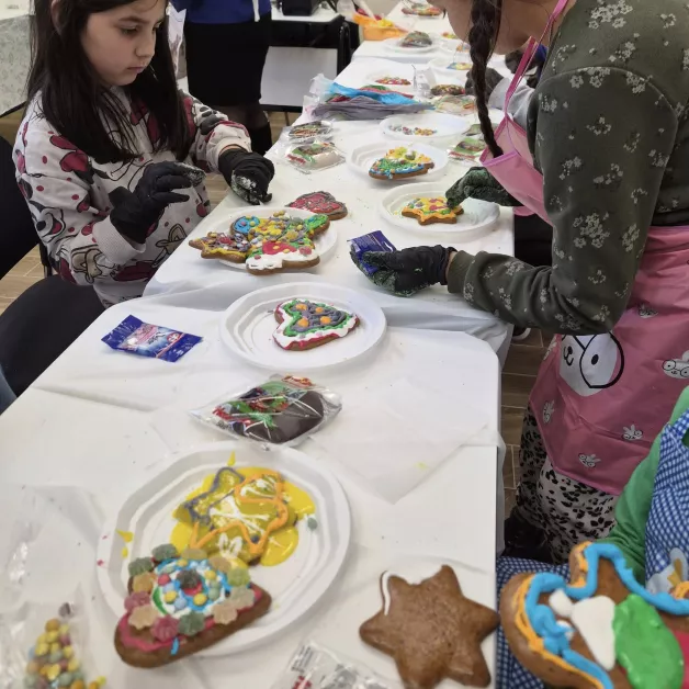 Празниците бяха придружени и от други събития. Преди дни в Биоцентър - Брезово се организира кулинарна артработилница, в която децата майсториха торта, пекоха баница и украсиха джинджифилови сладки и медени питки с обичайна пъстра коледна декорация. Сладкишите се трансфораха в красиви картини, а децата усетиха същинско творческо ентусиазъм, превъплъщавайки се в майстори - сладкари.