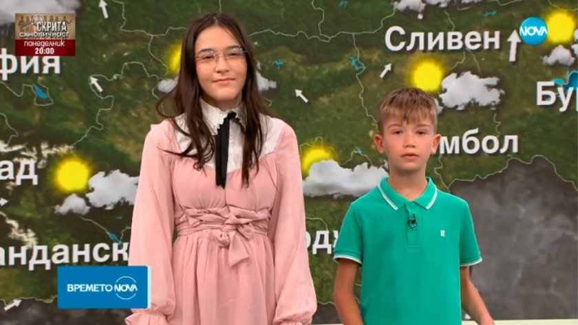 В Деня на детето прогнозата за времето по NOVA беше поверена на Никола и Карина - на 5 и 6 години.