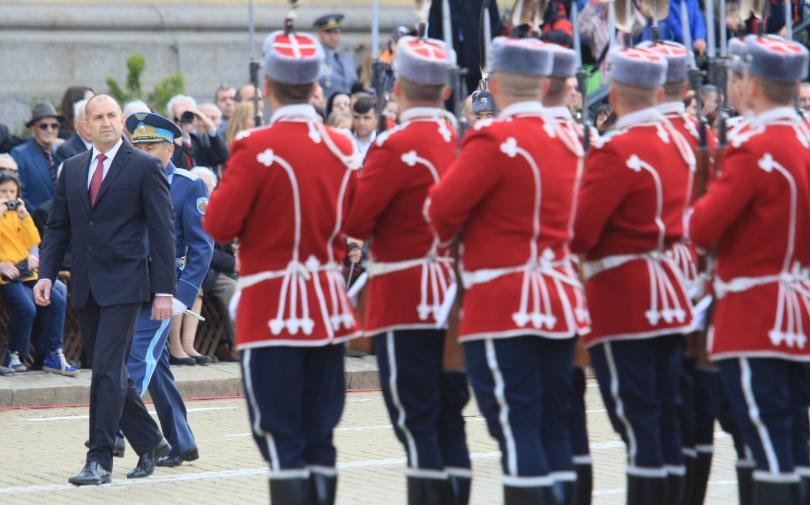 С фанфари на площада посрещнаха и президентът и висш главнокомандващ на въоръжените сили Румен Радев. Командващият парада е ген. майор Иван Лалов.