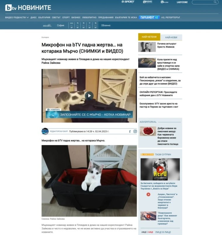 В деня на изборите БТВ реши да пусне вест, по какъв начин техен микрофон е „ станал жертва на котка “.