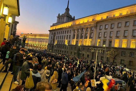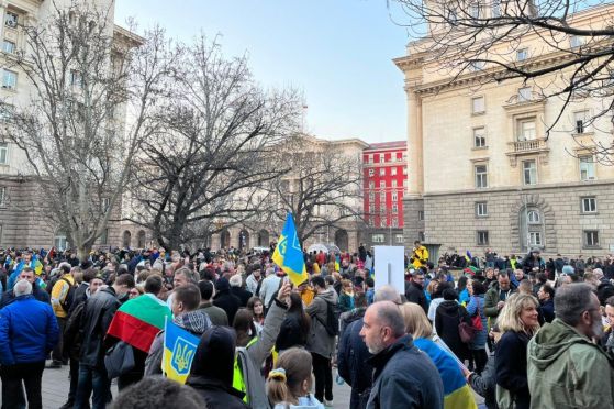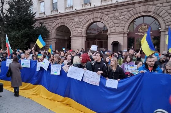 19:00 ч. - Демонстрантите издигнаха 10-метров байрак на Украйна. Множеството скандира " Слава на Украйна " и " Не на войната ". Депутати от Политическа партия също се включиха в шествието, измежду тях е и зам.-председателят на Народно събрание Мирослав Иванов.