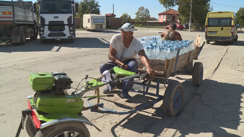 Питейна вода за хората от Трилистник. Доброволците на БЧК за следващ ден обикалят потърпевшите региони. По калните улици до домовете на хората тя се доставя с тази моторна каруца.