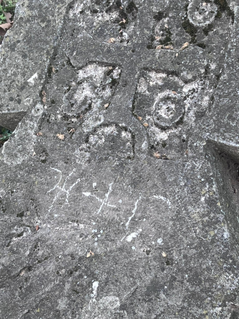 На фотосите, публикувани в обществените мрежи от Kaloyana Doneva, ясно се виждат издълбани с ключ букви „ Ж + Г “, върху остарял каменен кръст с орнаменти и историческа стойност. Не с тебешир, не с флумастер, не върху лист хартия. С ключ. Върху надгробие.