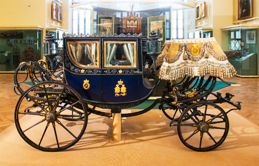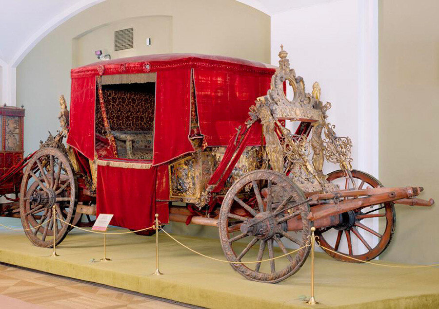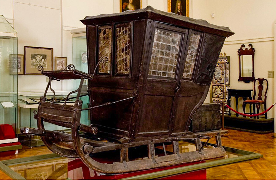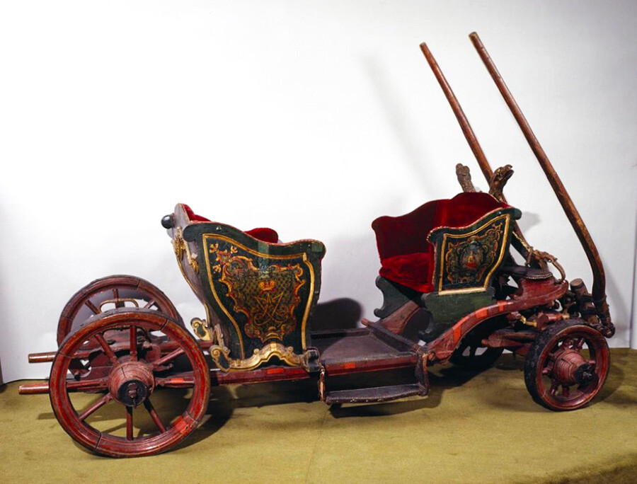 Петър I е прочут със своята аскетичност и елементарност в бита си. Тази скромна дребна карета принадлежи точно на него. Тя обаче е доста пъргава. Петър вижда дизайна ѝ, докато пътува из Европа. Каросерията на каретата може да се смъква от колелата и да се слага на разнообразни шейни, това разрешава една и съща карета да се употребява през цялата година.