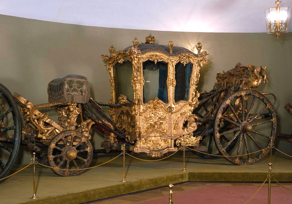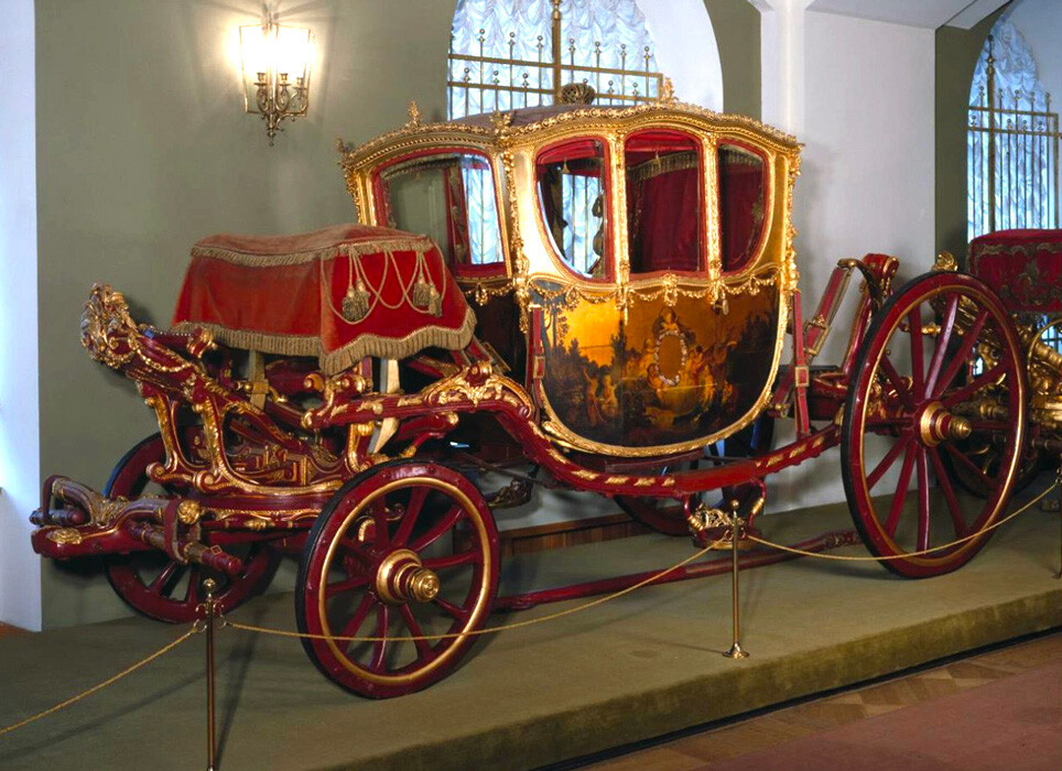 Абсолютно зашеметяваща карета, направена от явор и бронз, донасят на Елисавета при започване на 1740 година от Виена.