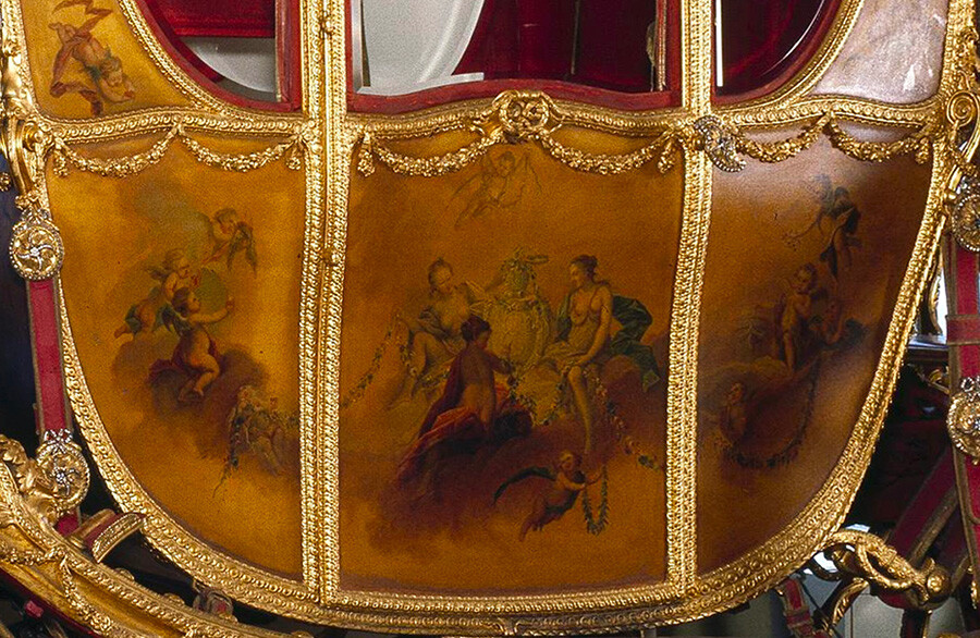 Каретата е направена през 1730-те години от дъб и бреза, а картините са изрисувани с маслени бои непосредствено върху дървото.